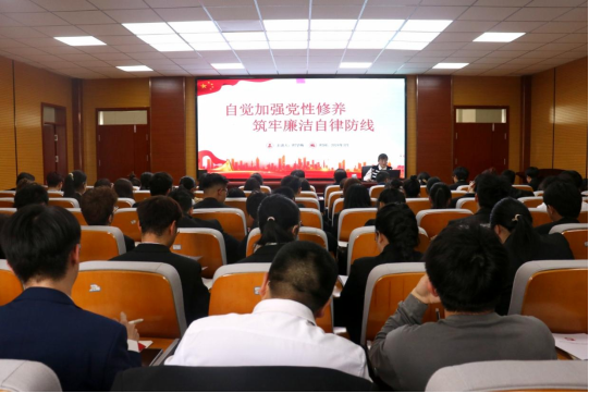 为进一步提升入党积极分子政治理论水平,锤炼党性修养,切实把好发展党员“入口关”,筑牢廉洁自律防线。3月20日下午,公司党委副书记、纪委书记时学梅在园林楼三楼报告室为第5期入党积极分子培训班全体学员讲授《自觉加强党性修养 筑牢廉洁自律防线》专题党课。