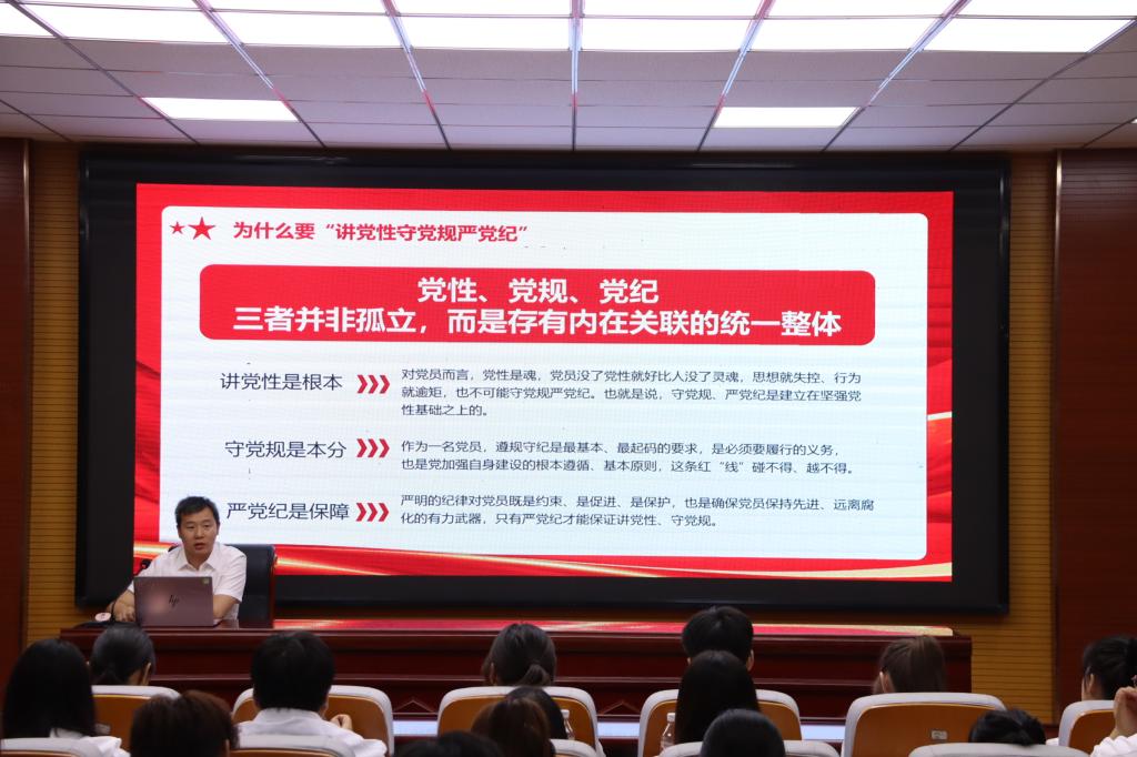 此次党课以“讲党性,守党规,严党纪”为主题,从为什么要讲党性守党规严党纪、存在问题以及怎么做三方面展开,阐释了党性党规党纪意义及内在关联,指出党性党规党纪关乎党的事业成败、关乎单位风气士气、关乎个人长远发展。结合具体案例从组织和个人层面回答了该怎样做的问题。