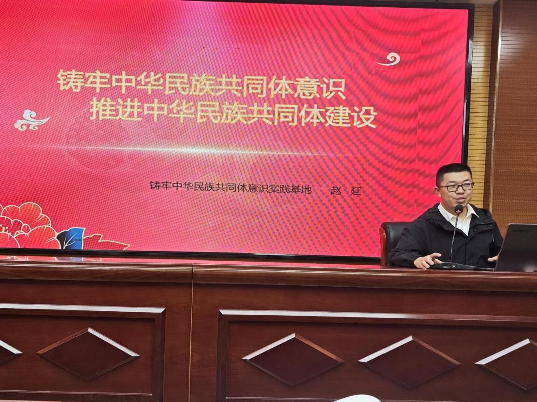赵廷以“铸牢中华民族共同体意识是民族团结之本”为切入点讲授党课,通过播放一段小男孩回答“自己是中华民族”的视频,生动阐释中华民族共同体核心理念。党课以时间为脉络,梳理铸牢中华民族共同体意识的发展历程,从本质属性与构成要素两个维度,清晰厘清中华民族与各民族的关系,并结合2024年全国民族团结进步表彰大会精神,深入解读“五个共同”“四个与共”及“五个认同”等重要理念。