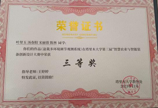 yl23411永利官网智慧农业与智能装备设计大赛校级三等奖