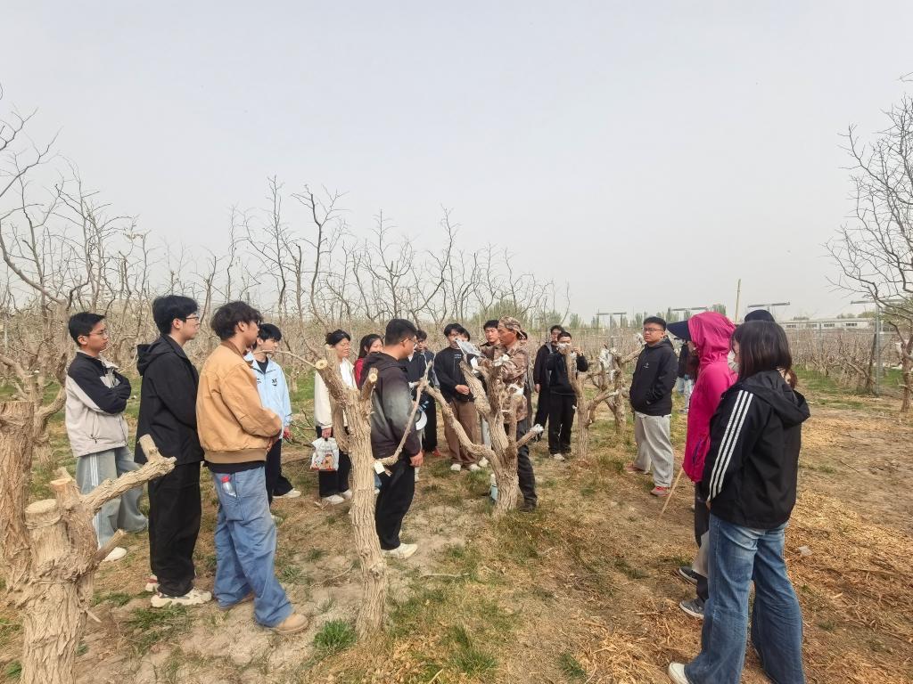 冯一峰老师采用“理论讲解+现场示范+一对一指导”的教学模式,使得同学们快速掌握修剪技术要点,同学们围在果树旁认真聆听,随后分组上手实操,逐步掌握了不同修剪手法的适用场景,学会了判断枝条去留,体会到“因树修剪、随枝作形”的园艺智慧。嫁接操作实训中,老师现场演示了枝接、芽接等常用嫁接方法,同学们手持嫁接刀反复练习,互相交流技巧,现场学习氛围浓厚。